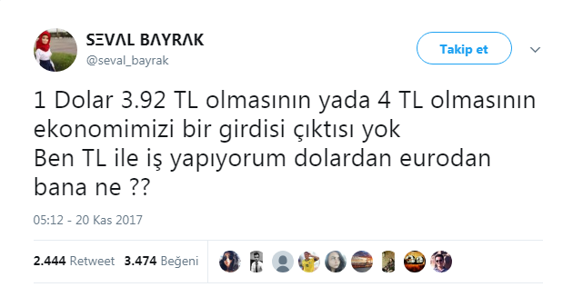 "Artı olarak yurt dışına satış olayı var. Dolar ne kadar artarsa , TL'de o kadar ucuzlar. Haliyle yabancıların Türkiye'den alışveriş yapması kolaylaşır. Üretici bize 5 TL'ye satacağı malı gider yurt dışına 2.5 dolara satar ve 2 katı kar eder. Bu yüzden üreticiler bize satmak yerine yurt dışına satmayı tercih eder , bu da Türkiye de kıtlığa neden olur , haliyle fiyatlar artar."