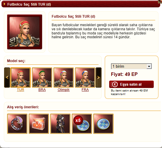 Alırken dikkat etmeniz gerekenler: Altın paraya tıklayın, saç stilini seçtikten sonra, hangi ülkeye ait saç bandını alacağınızı işaretleyin. Yukarıda seçtiğiniz saç bandını gördükten sonra ödemeyi yapın.